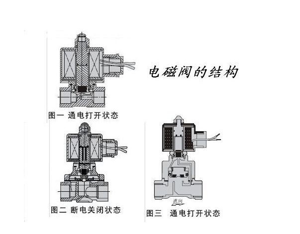 通電時(shí),電磁線(xiàn)圈產(chǎn)生電磁力把關(guān)閉件從閥座上提起,閥門(mén)打開(kāi);斷電時(shí),電磁力消失,彈簧把關(guān)閉件壓在閥座上,閥門(mén)關(guān)閉。